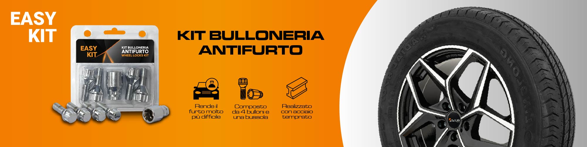 I bulloni antifurto sono piccoli ma fondamentali alleati nella protezione del tuo veicolo. Progettati per impedire la rimozione delle ruote senza una chiave specifica, rendono molto più difficile il furto da parte dei ladri. Realizzati in acciaio temperato, sono progettati per durare nel tempo e per resistere ad ogni tentativo di forzatura. Disponibili in diverse versioni e misure, ogni kit comprende 4 bulloni antifurto (uno per ogni ruota) e una bussola dedicata, senza la quale i bulloni non possono essere svitati.